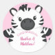 Adesivo Redondo Zebra Chá de fraldas Safari Menina Rosa