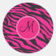 Adesivo Redondo Zebra Negra Preta, Rosa Quente, Monograma Inicial