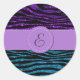 Adesivo Redondo Zebra roxa, zebra azul, zebra brilhante, monograma