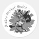 Uma zebra fica sobre as patas traseiras, tocando entusiasticamente uma árvore. Ao redor dele está o texto na moda "Zebra Zquer Solo!".
