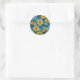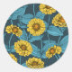 Adesivo Redondo Zinnias Amarelas em azul escuro