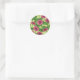 Adesivo Redondo Zinnias cor-de-rosa em verde claro
