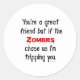 "Você é um amigo excelente, mas se os Zombies nos perseguirem, eu vou tropeçar em T-shirts e presentes.