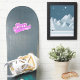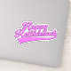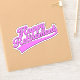 Logotipo de Retirada Feliz em texto rosa brilhante estilo vintage.