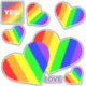 Aufkleber em groß, ein Bogen mit mehreren. Alle haben einen weißen Rand. Text kann verändert werden.