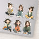 This cozy sticker sheet features a cute chibi-style girl in 6 different sitting poses, designed with soft colors and a calm, relaxing aesthetic.