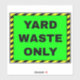 Este adesivo verde significa que o recipiente ou saco designado é especificamente para o descarte de resíduos de jardim. Ele indica claramente os materiais aceitáveis para descarte, como aparas de grama, folhas e galhos. O adesivo pode fornecer informações sobre o cronograma de coleta e quaisquer diretrizes relativas à preparação dos resíduos de jardim para a coleta. Ele enfatiza a importância de separar os resíduos de jardim de outros fluxos de resíduos para garantir o reciclagem e compostagem adequados. Este adesivo promove práticas responsáveis de gestão de resíduos e incentiva os residentes a participar ativamente nos programas de reciclagem. A cor verde reforça a associação com materiais orgânicos e serve como um lembrete visual para os residentes seguirem as diretrizes adequadas de descarte de resíduos de jardim.
