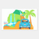 Um adesivo de retângulo branco com uma ilustração da estrada para Hana. A parte de trás de um inseto vintage estiva uma placa de licença Aloha com vistas de cachoeiras a caminho do destino. Uma palmeira tropical e uma placa de estrada guiam o viajante para Hana. Um adesivo bonito para um convite ou presente para o tema havaiano. Perfeito para o casamento de destino também!