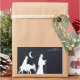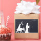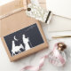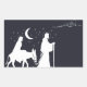 Design de Natal único com um selo branco de Maria e José na viagem a Belém vista à distância.