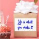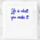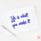 A vida é o que você faz. Um pensamento sobre a vida. Texto cursivo azul com efeito aflitivo.