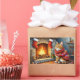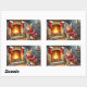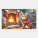 Adesivo Retangular Abyssinian Cat Sitting by Fireplace with Christmas