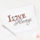 Este design de adesivo apresenta o texto "Adeus Sempre" com o "o" em Amor como um Coração de Tulipa Vermelha em Grinalda. -
