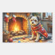 This charming Christmas illustration features a lovable Affenpinscher sitting beside a warm, glowing fireplace, wrapped in colorful Christmas lights with festive stockings hanging above. The breed’s expressive face and playful personality shine through in this cozy holiday setting. Perfect for Affenpinscher lovers, holiday décor enthusiasts, and Zazzle shoppers looking for unique Christmas artwork featuring their favorite small dog breed.