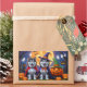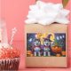 Uma cena divertida de Halloween, com um cachorrinho malicioso a espreitar-se de uma abóbora esculpida, rodeada por vibrações de outono assustadoras. Com um charme viscoso e cores de outono, é o toque perfeito de humor para a estação.