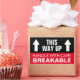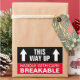 Manípulo quebrável com cuidado Assim, movendo-se e enviando autocolantes. Etiquetas de advertência personalizadas em preto e vermelho para caixas móveis, enviando pacotes frágeis e muito mais. Símbolo de seta dupla. Cores personalizáveis. É útil para realocação cuidadosa, transporte frágil, escritório, depósito, entrega, negócios, empresa, escola, serviço de entrega, webshop, serviço de encomendas, empresa de transporte, trabalho delicado em vidro e muito mais. Modelo de tipografia moderna em negrito