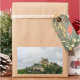 Cartaz de fotografia retangular com o castelo e a aldeia de Turenne medieval situada numa colina perto do rio Dordogne, Correze, na França. É uma das aldeias mais bonitas da França.
