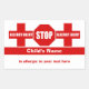 Um adesivo de aviso médico gráfico com um modelo para o nome e o texto do seu filho.