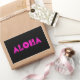 Aloha em uma fonte brilhante de flor rosa contra um fundo que pode ser mudado. Você pode adicionar uma foto das suas férias havaianas se quiser.