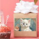 Vinhetas com um gato branco no estilo de Alphonse Mucha! Este gatinho liso e de olhos azuis posou com flores cor-de-rosa e cobertores azuis. Um presente fabuloso para amantes de gatos e colecionadores de Art Nouveau!