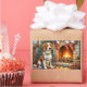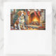 This festive Christmas illustration features an energetic American English Foxhound sitting beside a warm, glowing fireplace, wrapped in twinkling Christmas lights with stockings hanging above. The breed’s alert expression and sleek, athletic build add charm and personality to this cozy holiday scene. Perfect for American English Foxhound lovers, holiday décor fans, and Zazzle shoppers looking for unique Christmas artwork featuring their favorite hound breed.