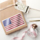 Esta design impressionante possui uma bandeira americana com um acabamento metálico.