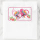 Vocês vão se divertir achando usos para este adesivo retangular com nossos dois tucanos coloridos sentados em corações com flores e folhas tropicais. De presentes, envelopes, cadernos - você se diverte com eles!