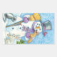 Adesivo Retangular Animais Fofos Construindo um Boneco de Neve para o
