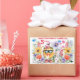 O design mais colorido e divertido com personagem fofo emoji num jardim de flores cheio de gatinhos, abelhas, borboletas, pássaros azuis e corações cor-de-rosa. Perfeito para uma menina de aniversário que, apenas adicione seu nome para torná-lo especial!