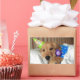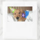 Já se cansou depois de um longo dia celebrando seu aniversário? Esta design apresenta uma fotografia de um bonito cão que se recupera de ouros, escondido na cama, enquanto veste pijama e um chapéu de festa e segura o seu ursinho de pelúcia. Hora de dormir!