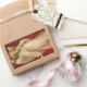 Vitoriano no estilo, esta elegante design de vintage apresenta um belo anjo loiro com um halo de ouro, cercado por estrelas ouros num fundo vermelho de Natal.