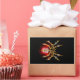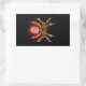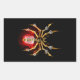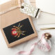 Aranha mecânica, com pá-pá de ouro, engrenagens de latão e uma lâmpada de vidro vermelha sobre fundo preto. Estilo Steampunk.