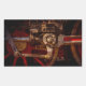 Vista aproximada das rodas vermelhas e das varetas motoras de um antigo comboio a vapor, locomitivo, motor. Fotografia texturizada. Estrada de ferro, arte ferroviária. Vista aproximada das máquinas de colheita e dos meios de transporte.