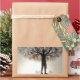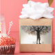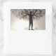 Um design de arte digital de um homem silenciado esticando seus braços em ramos criando um belo e majestoso cheio de árvores coloridas.