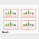 Feliz Natal dos adesivos para adicionar aos presentes embrulhados que você dá a seus amigos e parentes de sua família com uma ilustração divertida de presentes e uma árvore de Natal em um estilo retrô caprichoso inspirado no estilo minimalista maravilhoso de desenho animado de 50. Feliz Natal em uma fonte vermelha moderna e seu nome familiar em um roteiro vermelho ousado e uma fronteira de listras de menta.