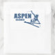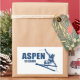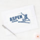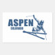 Aspen Colorado tem uma das melhores e mais famosas estações de esqui do estado, uma incrível paisagem montanhosa, e uma recreação interminável. Este design de excelente tem um esquiador puxando um salto com texto em negrito.