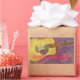 mostra uma guitarra acústica colorida com a patina amarela da arte original! também o slogan "Austin Live Music"