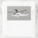 Um adesivo com um helicóptero branco, marca-novo. Esse tipo de robô é popular entre empresários ricos, gerentes de topo e entusiastas da aviação.