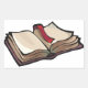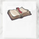 Esta design é um livro aberto. O livro está aberto com um marcador de fita vermelho. Este design de livro aberto parece excelente neste adesivo