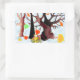 Esta imagem foi projetada como um dia de outono com a neve descendo. As árvores estão perdendo as folhas e os perus estão sentados em seus vegetais e frutas. Esses adesivos vêm em uma variedade de estilos, formas e tamanhos. Um excelente extra para a sala de aula para ensinar.