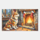 Adesivo Retangular Azawakh Sitting by Fireplace with Christmas Lights