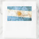 Este item tem uma bandeira de estilo angustiado da Argentina a um leve ângulo. A bandeira nacional da Argentina é uma tribanda, composta por três bandas horizontais igualmente largas, azuis-claro, brancas e azuis-claro, com um Sol amarelo de maio, que estava no centro.