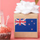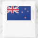 A bandeira da Nova Zelândia é uma placa azul com a bandeira da União no cantão e quatro estrelas vermelhas com fronteiras brancas à direita. As estrelas representam a constelação de Crux, a Cruz do Sul. A bandeira da Nova Zelândia fora da colmeia em Wellington. A primeira bandeira da Nova Zelândia, a bandeira das Tribos Unidas da Nova Zelândia, foi adotada antes da Nova Zelândia se tornar uma colônia britânica. Escolhida por uma assembleia de Chefes de Māori em 1834, a bandeira era de uma Rua Cruz de George com outra cruz no cantão contendo quatro estrelas num campo azul. Depois da formação da colônia em 1841, começaram a ser usados os ingressos britânicos. A atual bandeira foi concebida e adotada para utilização restrita em 1869 e tornou-se bandeira nacional em 1902. É a Alferes Azul Britânica, incorporando uma representação estilizada da Cruz Sul mostrando as quatro estrelas mais brilhantes da constelação. Cada estrela varia ligeiramente em tamanho. Bandeira da União no cantão relembra as gravatas coloniais da Nova Zelândia à Grã-Bretanha