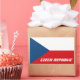 Bandeira da República Checa com texto aditado. Você pode editar o texto, alterar as fontes ou remover o texto completamente usando a opção "Personalizar".