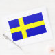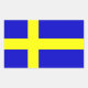 A bandeira da Suecia é uma cruz escandinava que se estende até às bordas da bandeira. Esta cruz escandinava representa o cristianismo Pensa-se que a design e as cores da bandeira sueca foram inspiradas pela atual Casaco de braços de Suecia de 1442, que é azul dividida trimestralmente por uma cruz de ouro, e modelada com a bandeira dinamarquesa. O azul e o amarelo têm sido usados como cores suecas pelo menos desde a casaco de armas reais do rei Magnus Birgersson, de 1275.