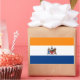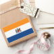 Srickers com a bandeira de Albany, Nova Iorque. Uma bandeira laranja, branca e azul com o emblema da cidade no centro