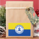 Vestidos com a bandeira de Riverside, Califórnia. Uma bandeira amarela e azul com o selo da cidade no centro
