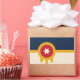 Fique com um design com a bandeira de Tulsa, Oklahoma. Uma bandeira azul bege e marinho com um escudo de Osage dourado contendo um círculo vermelho e uma estrela bege de seis pontas