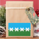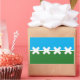Pau com uma bandeira do Cedar Park, Texas. Uma bandeira verde e azul