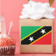 A bandeira nacional de Kitts e Nevis Ruas. Apresentando cores verdes, vermelhas, pretas e amarelas com duas estrelas brancas. Mostre seu amor por este lugar colocando-o em uma variedade de produtos zazzle ou comprar como presente.