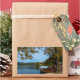 Um autocolante de fotografia retangular de barcos turísticos coloridos tradicionais no lago Bled sob uma castanha em cores do outono, numa paisagem de outono na Eslovênia.